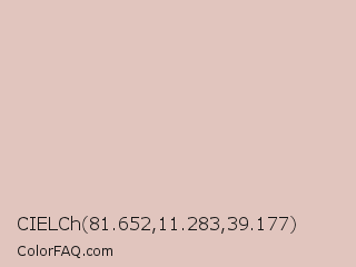 CIELCh 81.652,11.283,39.177 Color is a very light red color and the nearest color is Cavern Pink #e3bebe. Hex code #e1c5be and RGB value is rgb(225,197,190). In RGB color space, this color is composed of 88% red, 77% green, 75% blue, In CMYK color space, this color is composed of 0% cyan, 12% magenta, 16% yellow , 12% black , In HSL color space, this color has a hue angle of 12° , 37% saturation and 81% lightness.