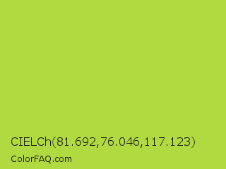 CIELCh 81.692,76.046,117.123 Color is a normal lime color and the nearest color is Conifer #acdd4d. Hex code #b0da3f and RGB value is rgb(176,218,63). In RGB color space, this color is composed of 69% red, 85% green, 25% blue, In CMYK color space, this color is composed of 19% cyan, 0% magenta, 71% yellow , 15% black , In HSL color space, this color has a hue angle of 76° , 68% saturation and 55% lightness.