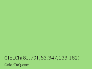CIELCh 81.791,53.347,133.182 Color is a light green color and the nearest color is Feijoa #9fdd8c. Hex code #9ddc80 and RGB value is rgb(157,220,128). In RGB color space, this color is composed of 62% red, 86% green, 50% blue, In CMYK color space, this color is composed of 29% cyan, 0% magenta, 42% yellow , 14% black , In HSL color space, this color has a hue angle of 101° , 57% saturation and 68% lightness.