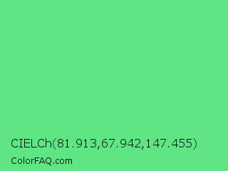 CIELCh 81.913,67.942,147.455 Color is a light green color and the nearest color is Very Light Malachite Green #64e986. Hex code #5fe584 and RGB value is rgb(95,229,132). In RGB color space, this color is composed of 37% red, 90% green, 52% blue, In CMYK color space, this color is composed of 59% cyan, 0% magenta, 42% yellow , 10% black , In HSL color space, this color has a hue angle of 137° , 72% saturation and 64% lightness.