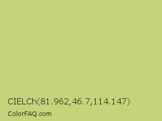 CIELCh 81.962,46.7,114.147 Color is a light lime color and the nearest color is Yellow Green #c5e17a. Hex code #c4d47a and RGB value is rgb(196,212,122). In RGB color space, this color is composed of 77% red, 83% green, 48% blue, In CMYK color space, this color is composed of 8% cyan, 0% magenta, 42% yellow , 17% black , In HSL color space, this color has a hue angle of 71° , 51% saturation and 65% lightness.