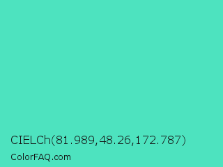 CIELCh 81.989,48.26,172.787 Color is a normal cyan color and the nearest color is Turquoise #40e0d0. Hex code #4de3bf and RGB value is rgb(77,227,191). In RGB color space, this color is composed of 30% red, 89% green, 75% blue, In CMYK color space, this color is composed of 66% cyan, 0% magenta, 16% yellow , 11% black , In HSL color space, this color has a hue angle of 166° , 73% saturation and 60% lightness.