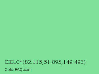 CIELCh 82.115,51.895,149.493 Color is a light green color and the nearest color is Light Green #90ee90. Hex code #7de199 and RGB value is rgb(125,225,153). In RGB color space, this color is composed of 49% red, 88% green, 60% blue, In CMYK color space, this color is composed of 44% cyan, 0% magenta, 32% yellow , 12% black , In HSL color space, this color has a hue angle of 137° , 63% saturation and 69% lightness.