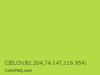 CIELCh 82.204,74.147,116.954 Color is a normal lime color and the nearest color is Conifer #acdd4d. Hex code #b3db45 and RGB value is rgb(179,219,69). In RGB color space, this color is composed of 70% red, 86% green, 27% blue, In CMYK color space, this color is composed of 18% cyan, 0% magenta, 68% yellow , 14% black , In HSL color space, this color has a hue angle of 76° , 68% saturation and 56% lightness.