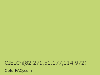 CIELCh 82.271,51.177,114.972 Color is a light lime color and the nearest color is Yellow Green #c5e17a. Hex code #c2d673 and RGB value is rgb(194,214,115). In RGB color space, this color is composed of 76% red, 84% green, 45% blue, In CMYK color space, this color is composed of 9% cyan, 0% magenta, 46% yellow , 16% black , In HSL color space, this color has a hue angle of 72° , 55% saturation and 65% lightness.