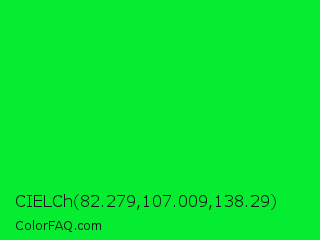 CIELCh 82.279,107.009,138.29 Color is a normal green color and the nearest color is Vivid Malachite #00cc33. Hex code #05ed30 and RGB value is rgb(5,237,48). In RGB color space, this color is composed of 2% red, 93% green, 19% blue, In CMYK color space, this color is composed of 98% cyan, 0% magenta, 80% yellow , 7% black , In HSL color space, this color has a hue angle of 131° , 96% saturation and 47% lightness.