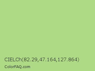 CIELCh 82.29,47.164,127.864 Color is a light green color and the nearest color is Feijoa #9fdd8c. Hex code #aeda85 and RGB value is rgb(174,218,133). In RGB color space, this color is composed of 68% red, 85% green, 52% blue, In CMYK color space, this color is composed of 20% cyan, 0% magenta, 39% yellow , 15% black , In HSL color space, this color has a hue angle of 91° , 53% saturation and 69% lightness.