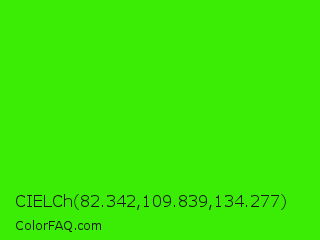 CIELCh 82.342,109.839,134.277 Color is a normal green color and the nearest color is Harlequin #3fff00. Hex code #3bec05 and RGB value is rgb(59,236,5). In RGB color space, this color is composed of 23% red, 93% green, 2% blue, In CMYK color space, this color is composed of 75% cyan, 0% magenta, 98% yellow , 7% black , In HSL color space, this color has a hue angle of 106° , 96% saturation and 47% lightness.
