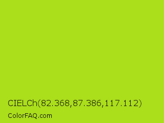 CIELCh 82.368,87.386,117.112 Color is a normal lime color and the nearest color is Inch Worm #b0e313. Hex code #abde1b and RGB value is rgb(171,222,27). In RGB color space, this color is composed of 67% red, 87% green, 11% blue, In CMYK color space, this color is composed of 23% cyan, 0% magenta, 88% yellow , 13% black , In HSL color space, this color has a hue angle of 76° , 78% saturation and 49% lightness.