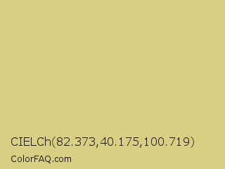 CIELCh 82.373,40.175,100.719 Color is a light yellow color and the nearest color is Putty #e7cd8c. Hex code #d9cf82 and RGB value is rgb(217,207,130). In RGB color space, this color is composed of 85% red, 81% green, 51% blue, In CMYK color space, this color is composed of 0% cyan, 5% magenta, 40% yellow , 15% black , In HSL color space, this color has a hue angle of 53° , 53% saturation and 68% lightness.