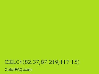 CIELCh 82.37,87.219,117.15 Color is a normal lime color and the nearest color is Inch Worm #b0e313. Hex code #abde1c and RGB value is rgb(171,222,28). In RGB color space, this color is composed of 67% red, 87% green, 11% blue, In CMYK color space, this color is composed of 23% cyan, 0% magenta, 87% yellow , 13% black , In HSL color space, this color has a hue angle of 76° , 78% saturation and 49% lightness.