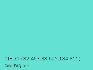 CIELCh 82.463,38.625,184.811 Color is a light cyan color and the nearest color is Aquamarine Blue #71d9e2. Hex code #63e1d2 and RGB value is rgb(99,225,210). In RGB color space, this color is composed of 39% red, 88% green, 82% blue, In CMYK color space, this color is composed of 56% cyan, 0% magenta, 7% yellow , 12% black , In HSL color space, this color has a hue angle of 173° , 68% saturation and 64% lightness.