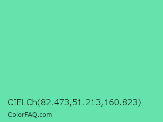 CIELCh 82.473,51.213,160.823 Color is a light green color and the nearest color is Medium Aquamarine #66ddaa. Hex code #64e4ac and RGB value is rgb(100,228,172). In RGB color space, this color is composed of 39% red, 89% green, 67% blue, In CMYK color space, this color is composed of 56% cyan, 0% magenta, 25% yellow , 11% black , In HSL color space, this color has a hue angle of 154° , 70% saturation and 64% lightness.