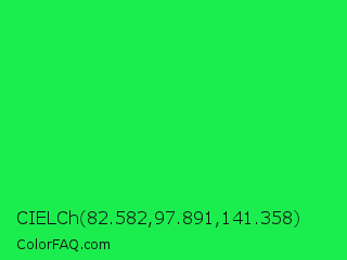 CIELCh 82.582,97.891,141.358 Color is a normal green color and the nearest color is Malachite #0bda51. Hex code #1ced4f and RGB value is rgb(28,237,79). In RGB color space, this color is composed of 11% red, 93% green, 31% blue, In CMYK color space, this color is composed of 88% cyan, 0% magenta, 67% yellow , 7% black , In HSL color space, this color has a hue angle of 135° , 85% saturation and 52% lightness.