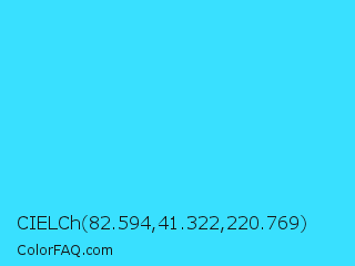 CIELCh 82.594,41.322,220.769 Color is a light cyan color and the nearest color is Loeen #15f2fd. Hex code #39e0ff and RGB value is rgb(57,224,255). In RGB color space, this color is composed of 22% red, 88% green, 100% blue, In CMYK color space, this color is composed of 78% cyan, 12% magenta, 0% yellow , 0% black , In HSL color space, this color has a hue angle of 189° , 100% saturation and 61% lightness.