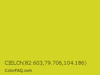 CIELCh 82.603,79.706,104.186 Color is a normal yellow color and the nearest color is Bird Flower #d4cd16. Hex code #d2d524 and RGB value is rgb(210,213,36). In RGB color space, this color is composed of 82% red, 84% green, 14% blue, In CMYK color space, this color is composed of 1% cyan, 0% magenta, 83% yellow , 16% black , In HSL color space, this color has a hue angle of 61° , 71% saturation and 49% lightness.