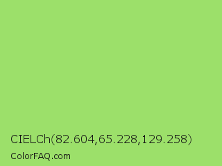 CIELCh 82.604,65.228,129.258 Color is a light green color and the nearest color is Inchworm #b2ec5d. Hex code #9ce06a and RGB value is rgb(156,224,106). In RGB color space, this color is composed of 61% red, 88% green, 42% blue, In CMYK color space, this color is composed of 30% cyan, 0% magenta, 53% yellow , 12% black , In HSL color space, this color has a hue angle of 95° , 66% saturation and 65% lightness.