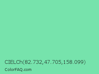 CIELCh 82.732,47.705,158.099 Color is a light green color and the nearest color is Medium Aquamarine #66ddaa. Hex code #75e3ab and RGB value is rgb(117,227,171). In RGB color space, this color is composed of 46% red, 89% green, 67% blue, In CMYK color space, this color is composed of 48% cyan, 0% magenta, 25% yellow , 11% black , In HSL color space, this color has a hue angle of 149° , 66% saturation and 67% lightness.