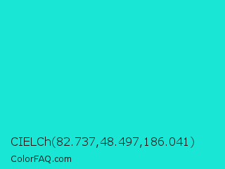 CIELCh 82.737,48.497,186.041 Color is a normal cyan color and the nearest color is Bright Turquoise #08e8de. Hex code #1ae6d6 and RGB value is rgb(26,230,214). In RGB color space, this color is composed of 10% red, 90% green, 84% blue, In CMYK color space, this color is composed of 89% cyan, 0% magenta, 7% yellow , 10% black , In HSL color space, this color has a hue angle of 175° , 80% saturation and 50% lightness.
