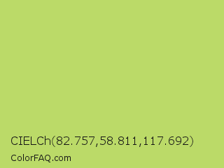 CIELCh 82.757,58.811,117.692 Color is a light lime color and the nearest color is June Bud #bdda57. Hex code #bbda68 and RGB value is rgb(187,218,104). In RGB color space, this color is composed of 73% red, 85% green, 41% blue, In CMYK color space, this color is composed of 14% cyan, 0% magenta, 52% yellow , 15% black , In HSL color space, this color has a hue angle of 76° , 61% saturation and 63% lightness.
