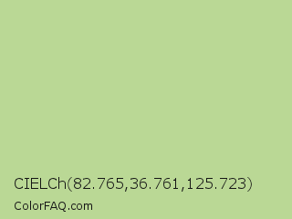 CIELCh 82.765,36.761,125.723 Color is a light green color and the nearest color is Pine Glade #c7cd90. Hex code #bad895 and RGB value is rgb(186,216,149). In RGB color space, this color is composed of 73% red, 85% green, 58% blue, In CMYK color space, this color is composed of 14% cyan, 0% magenta, 31% yellow , 15% black , In HSL color space, this color has a hue angle of 87° , 46% saturation and 72% lightness.