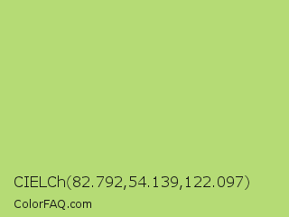 CIELCh 82.792,54.139,122.097 Color is a light green color and the nearest color is Yellow Green #c5e17a. Hex code #b5db75 and RGB value is rgb(181,219,117). In RGB color space, this color is composed of 71% red, 86% green, 46% blue, In CMYK color space, this color is composed of 17% cyan, 0% magenta, 47% yellow , 14% black , In HSL color space, this color has a hue angle of 82° , 59% saturation and 66% lightness.