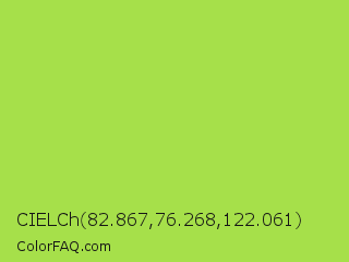 CIELCh 82.867,76.268,122.061 Color is a normal green color and the nearest color is Conifer #acdd4d. Hex code #a6e04a and RGB value is rgb(166,224,74). In RGB color space, this color is composed of 65% red, 88% green, 29% blue, In CMYK color space, this color is composed of 26% cyan, 0% magenta, 67% yellow , 12% black , In HSL color space, this color has a hue angle of 83° , 71% saturation and 58% lightness.
