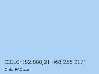 CIELCh 82.888,21.468,256.217 Color is a very light blue color and the nearest color is Pale Cornflower Blue #abcdef. Hex code #acd3f5 and RGB value is rgb(172,211,245). In RGB color space, this color is composed of 67% red, 83% green, 96% blue, In CMYK color space, this color is composed of 30% cyan, 14% magenta, 0% yellow , 4% black , In HSL color space, this color has a hue angle of 208° , 78% saturation and 82% lightness.