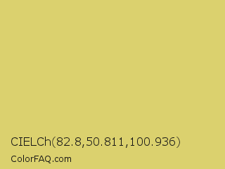 CIELCh 82.8,50.811,100.936 Color is a light yellow color and the nearest color is Chenin #dfcd6f. Hex code #dbd16e and RGB value is rgb(219,209,110). In RGB color space, this color is composed of 86% red, 82% green, 43% blue, In CMYK color space, this color is composed of 0% cyan, 5% magenta, 50% yellow , 14% black , In HSL color space, this color has a hue angle of 54° , 60% saturation and 65% lightness.