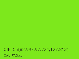 CIELCh 82.997,97.724,127.813 Color is a normal green color and the nearest color is Spring Frost #87ff2a. Hex code #7de81c and RGB value is rgb(125,232,28). In RGB color space, this color is composed of 49% red, 91% green, 11% blue, In CMYK color space, this color is composed of 46% cyan, 0% magenta, 88% yellow , 9% black , In HSL color space, this color has a hue angle of 91° , 82% saturation and 51% lightness.