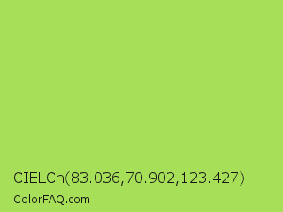 CIELCh 83.036,70.902,123.427 Color is a light green color and the nearest color is Conifer #acdd4d. Hex code #a7e058 and RGB value is rgb(167,224,88). In RGB color space, this color is composed of 65% red, 88% green, 35% blue, In CMYK color space, this color is composed of 25% cyan, 0% magenta, 61% yellow , 12% black , In HSL color space, this color has a hue angle of 85° , 69% saturation and 61% lightness.