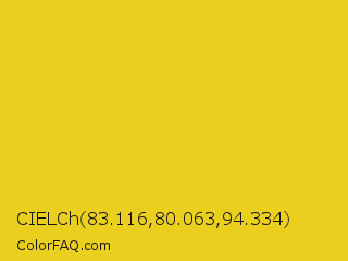 CIELCh 83.116,80.063,94.334 Color is a normal yellow color and the nearest color is Sunflower #e4d422. Hex code #ebcf1e and RGB value is rgb(235,207,30). In RGB color space, this color is composed of 92% red, 81% green, 12% blue, In CMYK color space, this color is composed of 0% cyan, 12% magenta, 87% yellow , 8% black , In HSL color space, this color has a hue angle of 52° , 84% saturation and 52% lightness.