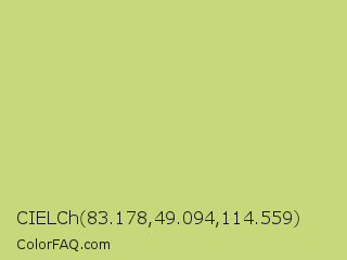 CIELCh 83.178,49.094,114.559 Color is a light lime color and the nearest color is Yellow Green #c5e17a. Hex code #c6d879 and RGB value is rgb(198,216,121). In RGB color space, this color is composed of 78% red, 85% green, 47% blue, In CMYK color space, this color is composed of 8% cyan, 0% magenta, 44% yellow , 15% black , In HSL color space, this color has a hue angle of 71° , 55% saturation and 66% lightness.