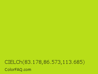 CIELCh 83.178,86.573,113.685 Color is a normal lime color and the nearest color is Inch Worm #b0e313. Hex code #b8de18 and RGB value is rgb(184,222,24). In RGB color space, this color is composed of 72% red, 87% green, 9% blue, In CMYK color space, this color is composed of 17% cyan, 0% magenta, 89% yellow , 13% black , In HSL color space, this color has a hue angle of 72° , 80% saturation and 48% lightness.