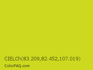 CIELCh 83.209,82.452,107.019 Color is a normal yellow color and the nearest color is Bird Flower #d4cd16. Hex code #ccd91e and RGB value is rgb(204,217,30). In RGB color space, this color is composed of 80% red, 85% green, 12% blue, In CMYK color space, this color is composed of 6% cyan, 0% magenta, 86% yellow , 15% black , In HSL color space, this color has a hue angle of 64° , 76% saturation and 48% lightness.