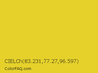CIELCh 83.231,77.27,96.597 Color is a normal yellow color and the nearest color is Sunflower #e4d422. Hex code #e6d12b and RGB value is rgb(230,209,43). In RGB color space, this color is composed of 90% red, 82% green, 17% blue, In CMYK color space, this color is composed of 0% cyan, 9% magenta, 81% yellow , 10% black , In HSL color space, this color has a hue angle of 53° , 79% saturation and 54% lightness.