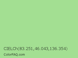 CIELCh 83.251,46.043,136.354 Color is a light green color and the nearest color is Granny Smith Apple Crayola #9de093. Hex code #a3df92 and RGB value is rgb(163,223,146). In RGB color space, this color is composed of 64% red, 87% green, 57% blue, In CMYK color space, this color is composed of 27% cyan, 0% magenta, 35% yellow , 13% black , In HSL color space, this color has a hue angle of 107° , 55% saturation and 72% lightness.