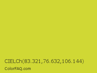 CIELCh 83.321,76.632,106.144 Color is a normal yellow color and the nearest color is Pear #d1e231. Hex code #d0d834 and RGB value is rgb(208,216,52). In RGB color space, this color is composed of 82% red, 85% green, 20% blue, In CMYK color space, this color is composed of 4% cyan, 0% magenta, 76% yellow , 15% black , In HSL color space, this color has a hue angle of 63° , 68% saturation and 53% lightness.