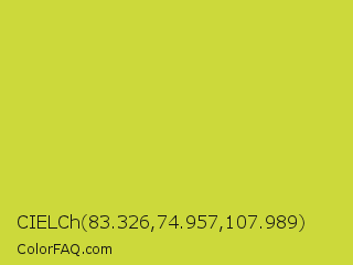 CIELCh 83.326,74.957,107.989 Color is a normal yellow color and the nearest color is Pear #d1e231. Hex code #ccd93b and RGB value is rgb(204,217,59). In RGB color space, this color is composed of 80% red, 85% green, 23% blue, In CMYK color space, this color is composed of 6% cyan, 0% magenta, 73% yellow , 15% black , In HSL color space, this color has a hue angle of 65° , 68% saturation and 54% lightness.