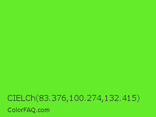 CIELCh 83.376,100.274,132.415 Color is a normal green color and the nearest color is Spring Frost #87ff2a. Hex code #64ec2b and RGB value is rgb(100,236,43). In RGB color space, this color is composed of 39% red, 93% green, 17% blue, In CMYK color space, this color is composed of 58% cyan, 0% magenta, 82% yellow , 7% black , In HSL color space, this color has a hue angle of 102° , 84% saturation and 55% lightness.