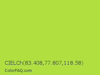 CIELCh 83.408,77.807,118.58 Color is a normal lime color and the nearest color is Conifer #acdd4d. Hex code #b0e042 and RGB value is rgb(176,224,66). In RGB color space, this color is composed of 69% red, 88% green, 26% blue, In CMYK color space, this color is composed of 21% cyan, 0% magenta, 71% yellow , 12% black , In HSL color space, this color has a hue angle of 78° , 72% saturation and 57% lightness.