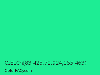 CIELCh 83.425,72.924,155.463 Color is a normal green color and the nearest color is Medium Spring Green #00fa9a. Hex code #1ded94 and RGB value is rgb(29,237,148). In RGB color space, this color is composed of 11% red, 93% green, 58% blue, In CMYK color space, this color is composed of 88% cyan, 0% magenta, 38% yellow , 7% black , In HSL color space, this color has a hue angle of 154° , 85% saturation and 52% lightness.