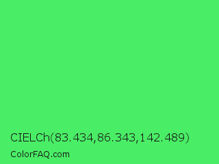 CIELCh 83.434,86.343,142.489 Color is a light green color and the nearest color is Screamin Green #66ff66. Hex code #4aed66 and RGB value is rgb(74,237,102). In RGB color space, this color is composed of 29% red, 93% green, 40% blue, In CMYK color space, this color is composed of 69% cyan, 0% magenta, 57% yellow , 7% black , In HSL color space, this color has a hue angle of 130° , 82% saturation and 61% lightness.