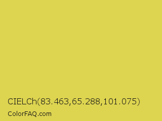 CIELCh 83.463,65.288,101.075 Color is a normal yellow color and the nearest color is Wattle #dcd747. Hex code #ddd450 and RGB value is rgb(221,212,80). In RGB color space, this color is composed of 87% red, 83% green, 31% blue, In CMYK color space, this color is composed of 0% cyan, 4% magenta, 64% yellow , 13% black , In HSL color space, this color has a hue angle of 56° , 67% saturation and 59% lightness.