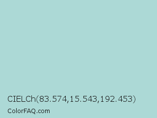 CIELCh 83.574,15.543,192.453 Color is a light cyan color and the nearest color is Aqua Island #a1dad7. Hex code #acd9d6 and RGB value is rgb(172,217,214). In RGB color space, this color is composed of 67% red, 85% green, 84% blue, In CMYK color space, this color is composed of 21% cyan, 0% magenta, 1% yellow , 15% black , In HSL color space, this color has a hue angle of 176° , 37% saturation and 76% lightness.