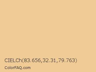 CIELCh 83.656,32.31,79.763 Color is a light orange color and the nearest color is Manhattan #f5c999. Hex code #f0cb95 and RGB value is rgb(240,203,149). In RGB color space, this color is composed of 94% red, 80% green, 58% blue, In CMYK color space, this color is composed of 0% cyan, 15% magenta, 38% yellow , 6% black , In HSL color space, this color has a hue angle of 36° , 75% saturation and 76% lightness.