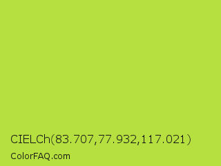 CIELCh 83.707,77.932,117.021 Color is a normal lime color and the nearest color is Conifer #acdd4d. Hex code #b5e040 and RGB value is rgb(181,224,64). In RGB color space, this color is composed of 71% red, 88% green, 25% blue, In CMYK color space, this color is composed of 19% cyan, 0% magenta, 71% yellow , 12% black , In HSL color space, this color has a hue angle of 76° , 72% saturation and 56% lightness.