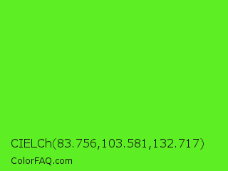 CIELCh 83.756,103.581,132.717 Color is a normal green color and the nearest color is Bright Green #66ff00. Hex code #5dee23 and RGB value is rgb(93,238,35). In RGB color space, this color is composed of 36% red, 93% green, 14% blue, In CMYK color space, this color is composed of 61% cyan, 0% magenta, 85% yellow , 7% black , In HSL color space, this color has a hue angle of 103° , 86% saturation and 54% lightness.