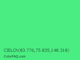 CIELCh 83.776,75.835,148.318 Color is a light green color and the nearest color is Very Light Malachite Green #64e986. Hex code #4aed82 and RGB value is rgb(74,237,130). In RGB color space, this color is composed of 29% red, 93% green, 51% blue, In CMYK color space, this color is composed of 69% cyan, 0% magenta, 45% yellow , 7% black , In HSL color space, this color has a hue angle of 141° , 82% saturation and 61% lightness.