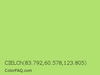 CIELCh 83.792,60.578,123.805 Color is a light green color and the nearest color is Inchworm #b2ec5d. Hex code #b0e06e and RGB value is rgb(176,224,110). In RGB color space, this color is composed of 69% red, 88% green, 43% blue, In CMYK color space, this color is composed of 21% cyan, 0% magenta, 51% yellow , 12% black , In HSL color space, this color has a hue angle of 85° , 65% saturation and 65% lightness.